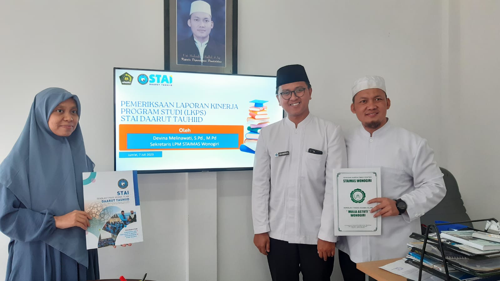 Ibu Devina Melinawati, M.Pd. mewakili Ketua STAIMAS Wonogiri, Atik Nurfatmawati, M.I.Kom sebagai perwakilan dalam kunjungan di STAI Daarut Tauhiid yang disambut langsung oleh Ketua STAI Daarut Tauhiid Dr. Mulyadi, S.Sos.I., M.Pd., Yudi Khoeri Abdillah, M.H ketua LPM, Senki Nurachmadi, M.H selaku Wakil Ketua 1, Agus Mubarok, M.Sos wakil Ketua 2, para kaprodi Tedhi Setiadhi, M.Sos Ketua Program Studi Komunikasi Penyiaran Islam dan Agung Wildan Azizi, M.H Ketua Prodi Hukum Ekonomi Syariah.