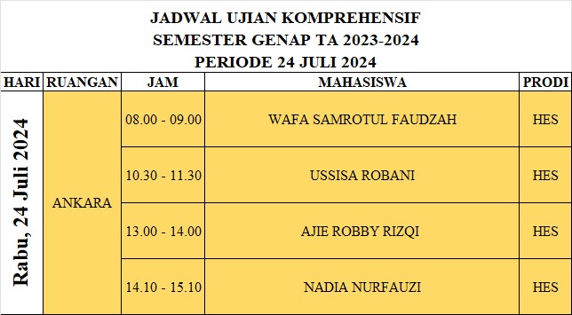 JADWAL UJIAN KOMPREHENSIF PERIODE Bulan Juli TAHUN AKADEMIK 2023/2024